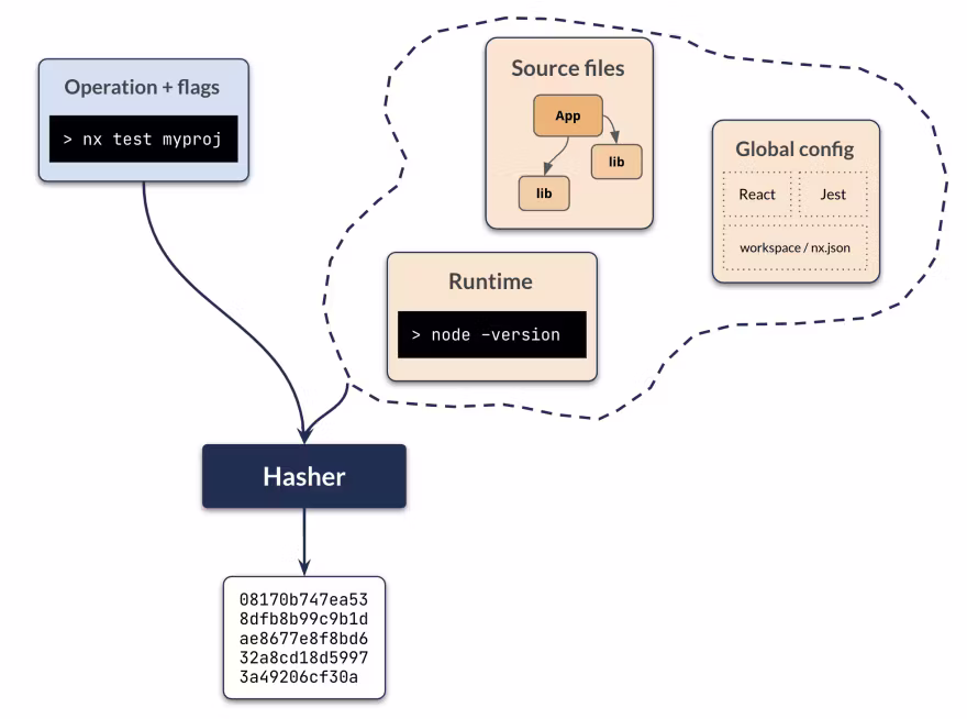 Nx comes with a so-called computation caching feature. For every cacheable operation, Nx takes a set of input parameters, computes a hash and stores the result.