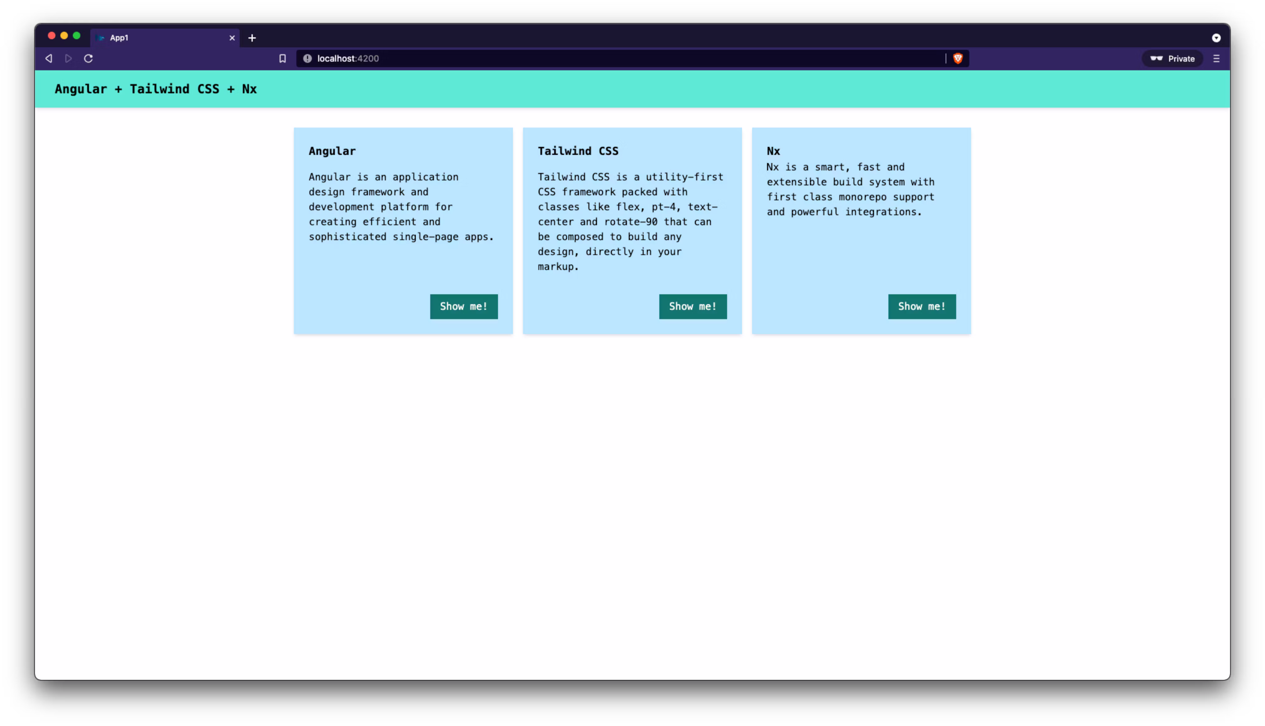 Please note that this blog post is not meant to be a Tailwind CSS or Angular tutorial. The purpose is to show how to use them together and how Nx can help to improve the developer experience and expand the native Angular capabilities when working with Tailwind CSS.